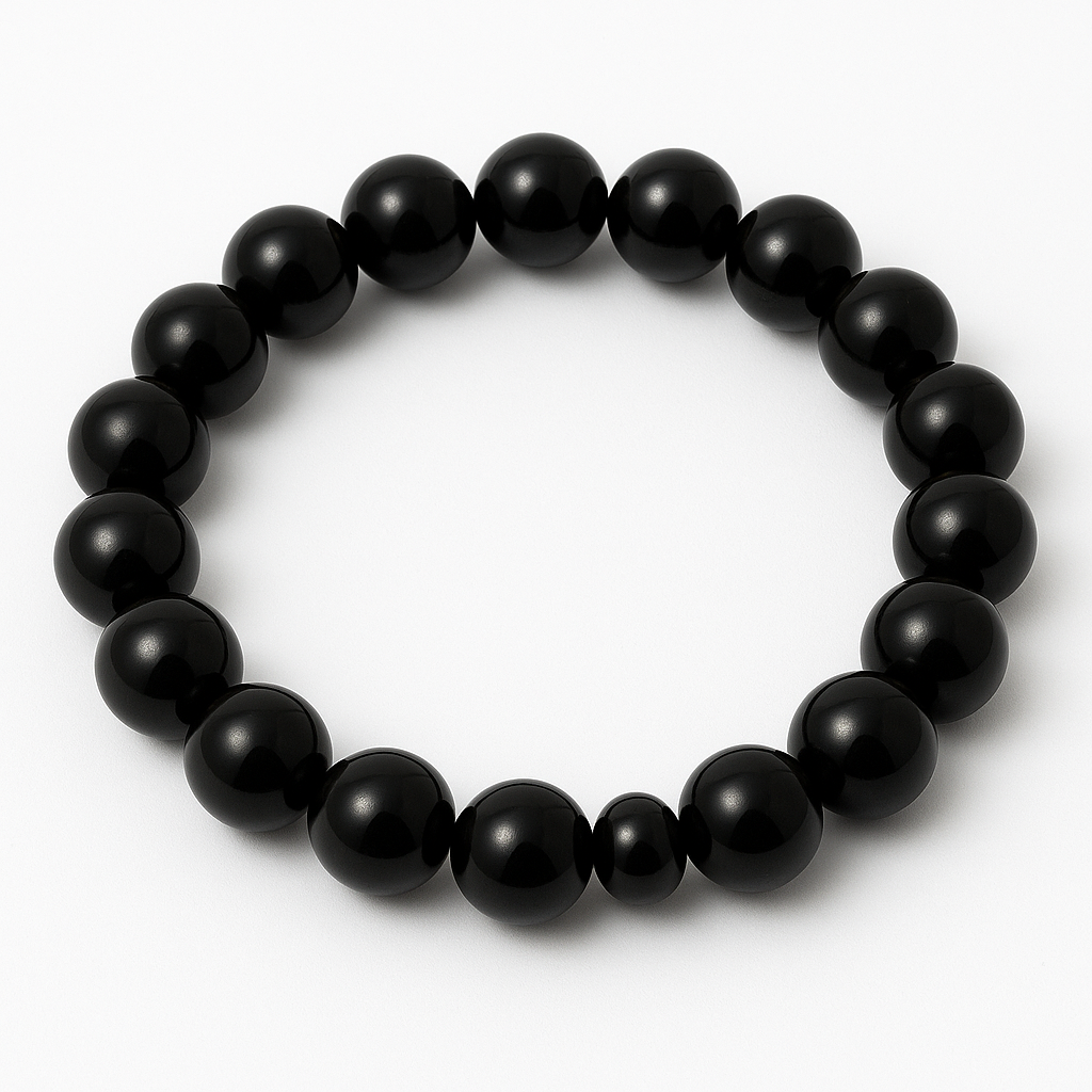 The Black Obsidian Bracelet is a powerful protection stone known for its intense grounding and shielding properties. Formed from volcanic lava, this stone acts as a mirror to the soul, revealing hidden truths and protecting the wearer from negative energies and psychic attacks. It works as an energetic cleanser that absorbs negativity and helps one reconnect with their inner strength and truth.